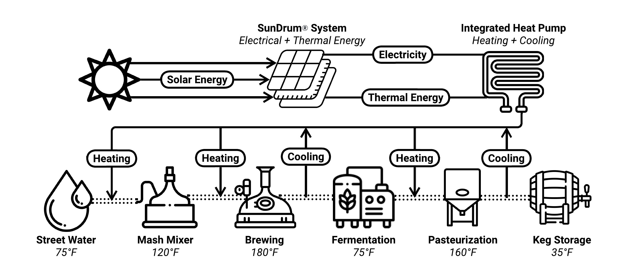 SunDrum® helps breweries meet financial and operational needs more effectively than traditional photovoltaic systems alone.