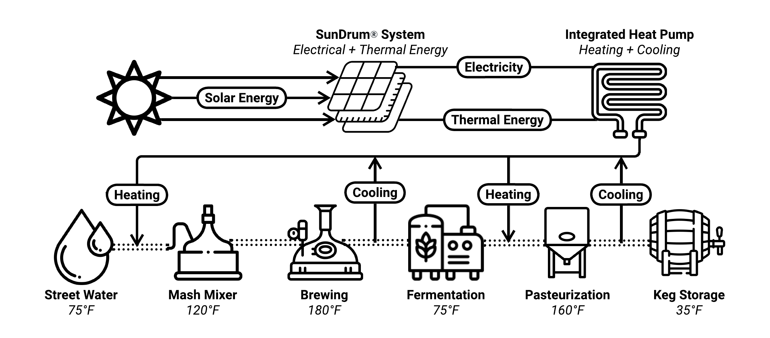 SunDrum Solar provides electricity, heating, and cooling to power the brewing process.